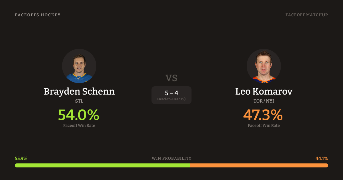 Brayden Schenn vs Leo Komarov — Faceoff Head-to-Head
