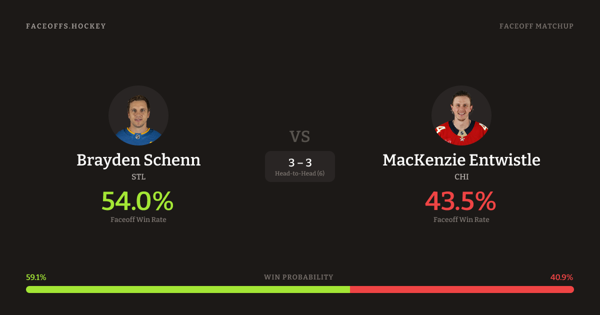 Brayden Schenn vs MacKenzie Entwistle — Faceoff Head-to-Head