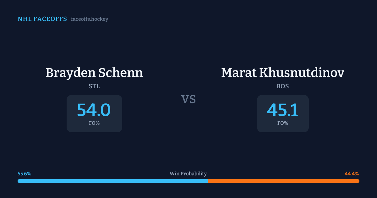 Brayden Schenn vs Marat Khusnutdinov — Faceoff Head-to-Head