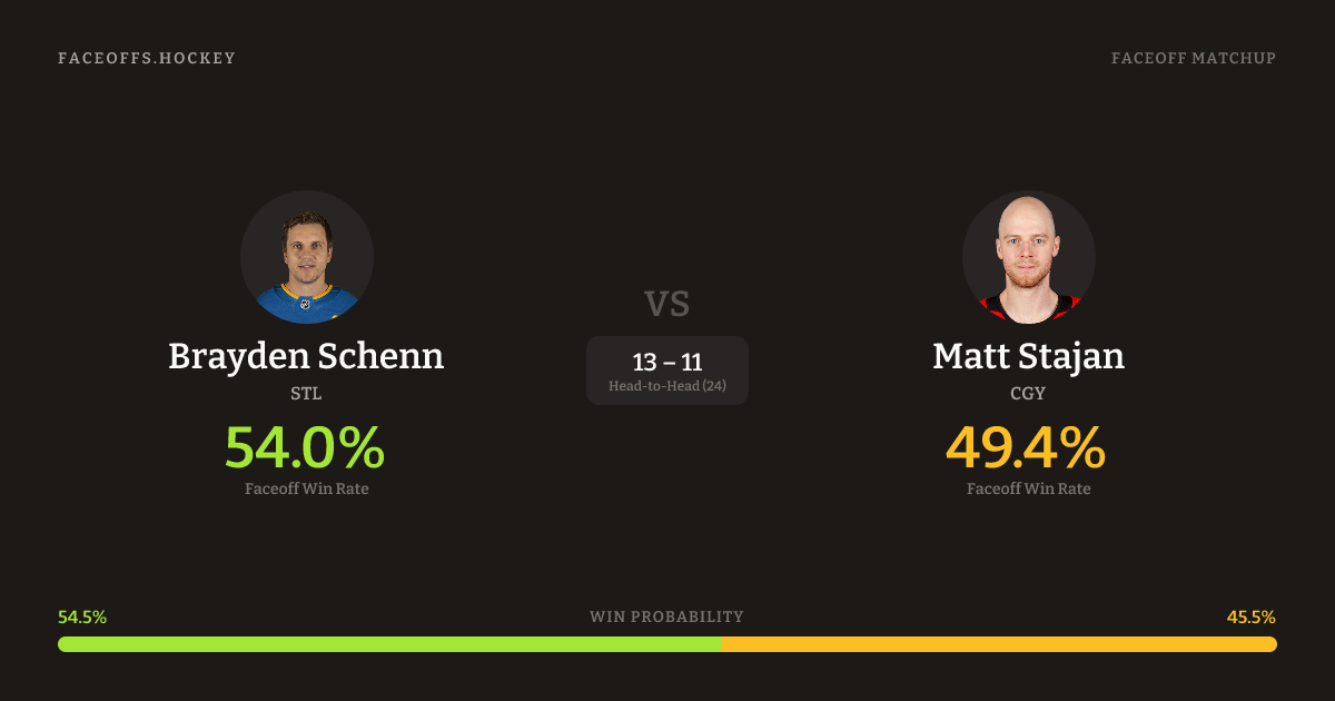 Brayden Schenn vs Matt Stajan — Faceoff Head-to-Head