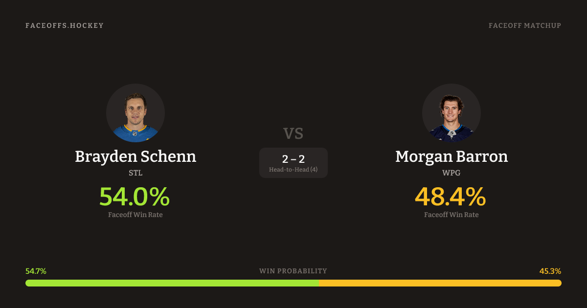 Brayden Schenn vs Morgan Barron — Faceoff Head-to-Head