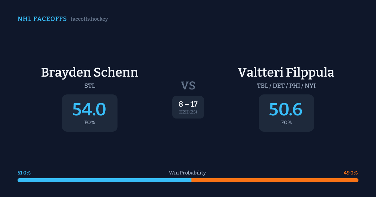 Brayden Schenn vs Valtteri Filppula — Faceoff Head-to-Head