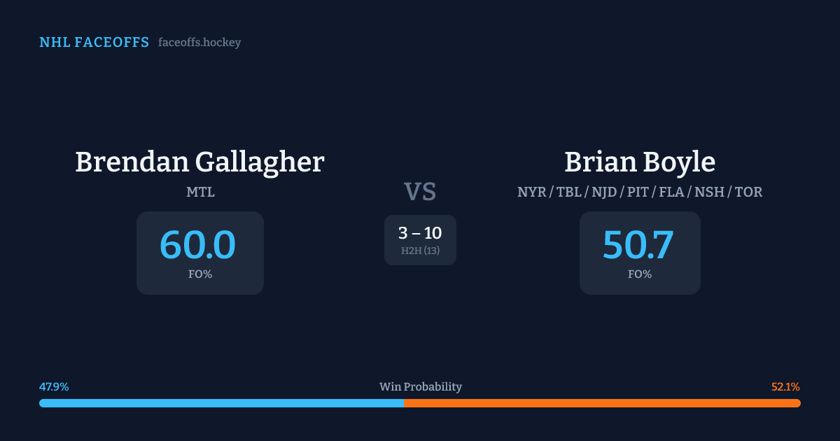 Brendan Gallagher vs Brian Boyle — Faceoff Head-to-Head