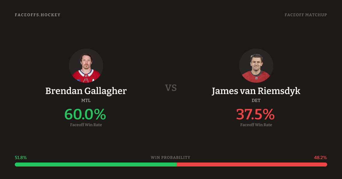 Brendan Gallagher vs James van Riemsdyk — Faceoff Head-to-Head