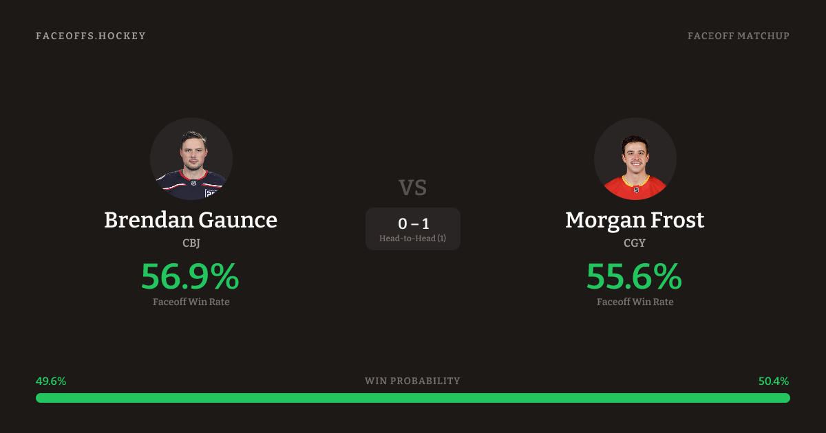 Brendan Gaunce vs Morgan Frost — Faceoff Head-to-Head