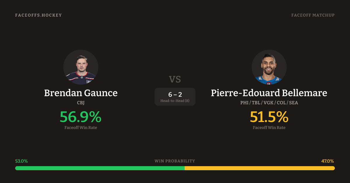 Brendan Gaunce vs Pierre-Edouard Bellemare — Faceoff Head-to-Head