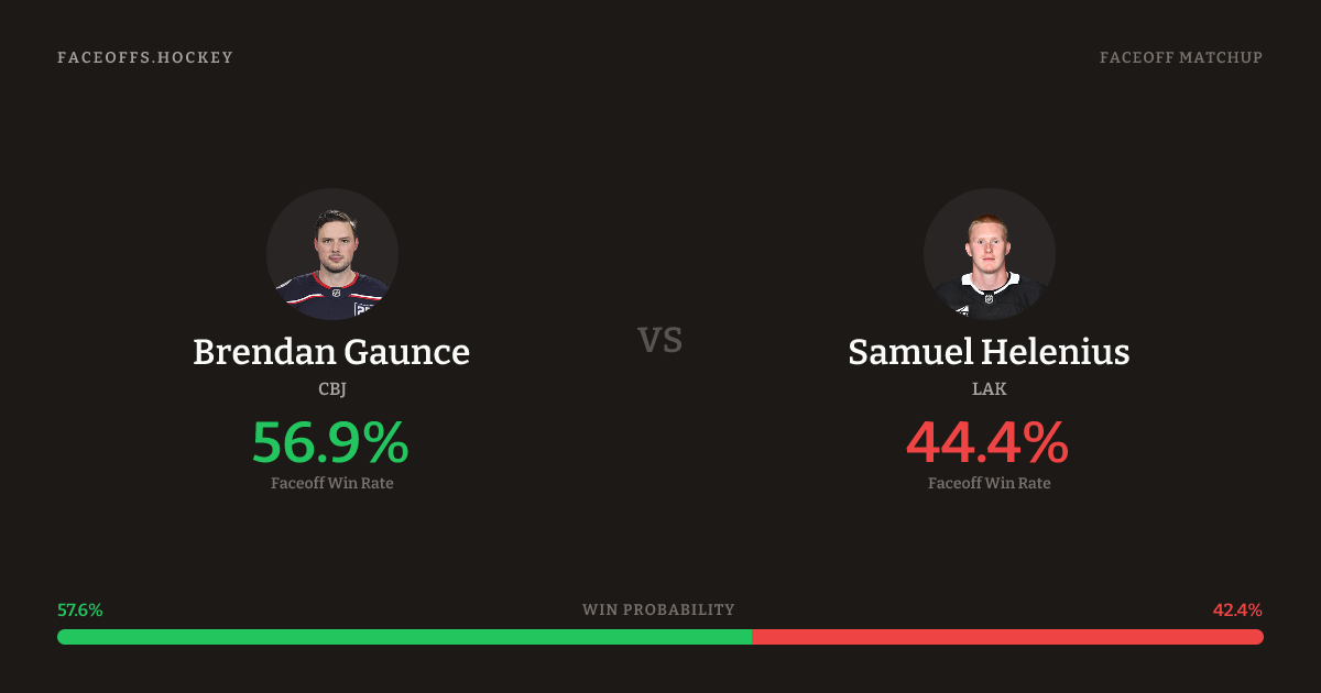 Brendan Gaunce vs Samuel Helenius — Faceoff Head-to-Head