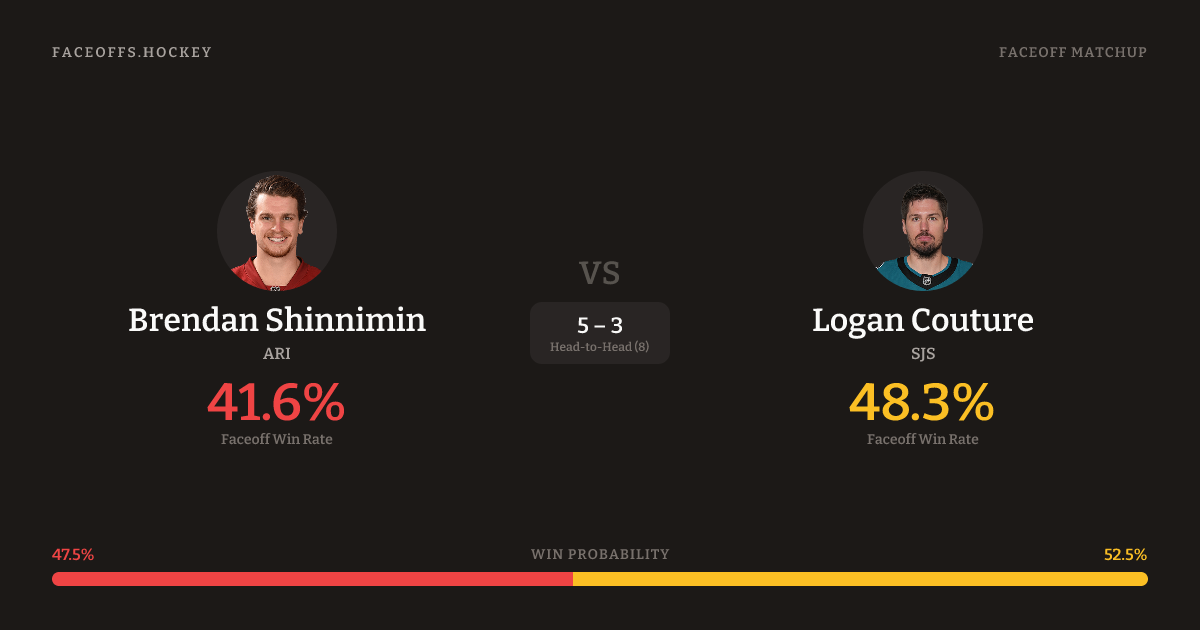 Brendan Shinnimin vs Logan Couture — Faceoff Head-to-Head