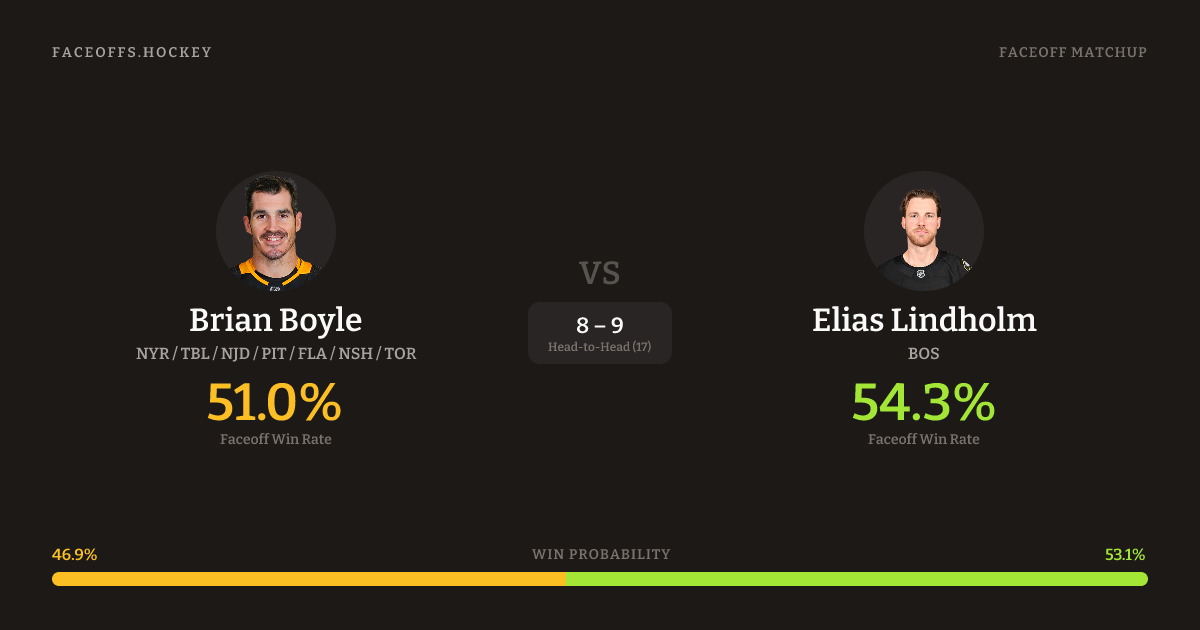 Brian Boyle vs Elias Lindholm — Faceoff Head-to-Head