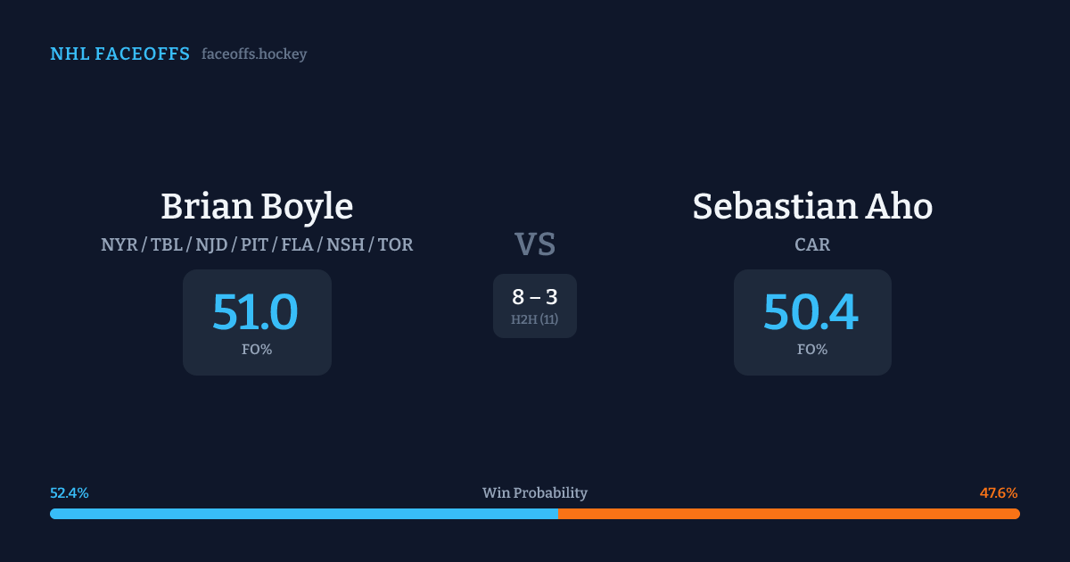 Brian Boyle vs Sebastian Aho — Faceoff Head-to-Head