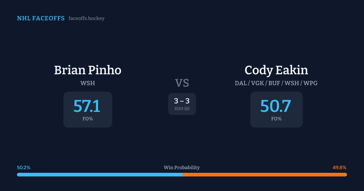Brian Pinho vs Cody Eakin — Faceoff Head-to-Head