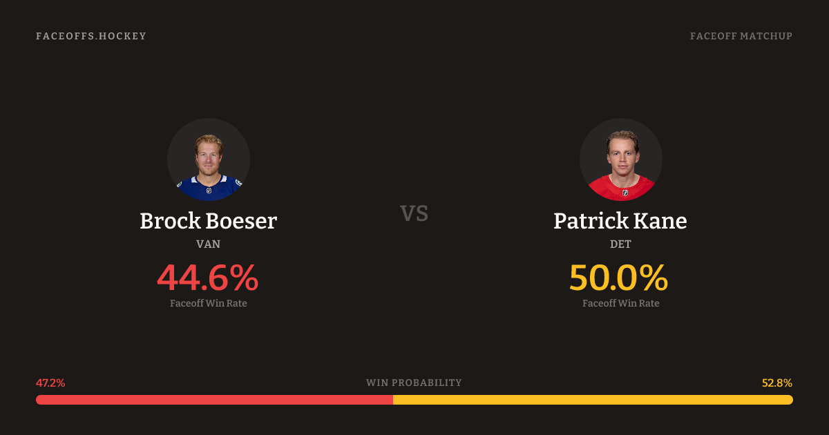 Brock Boeser vs Patrick Kane — Faceoff Head-to-Head