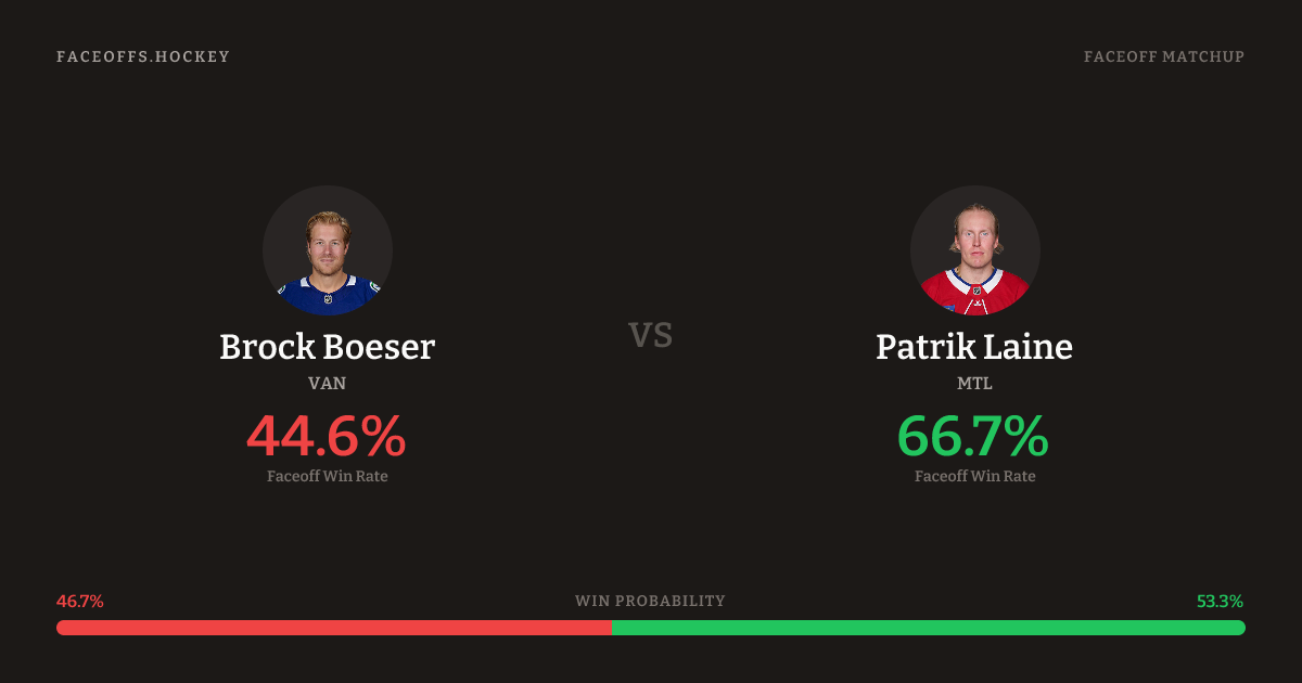 Boeser 47.2% vs Laine 50.5% (-22.1%)