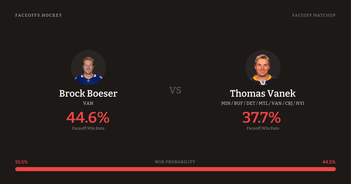 Boeser 42.0% vs Vanek 41.7% (+2.7%)