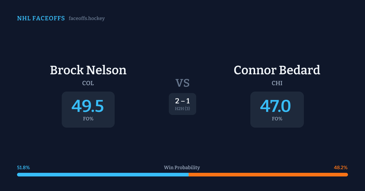 Brock Nelson vs Connor Bedard — Faceoff Head-to-Head