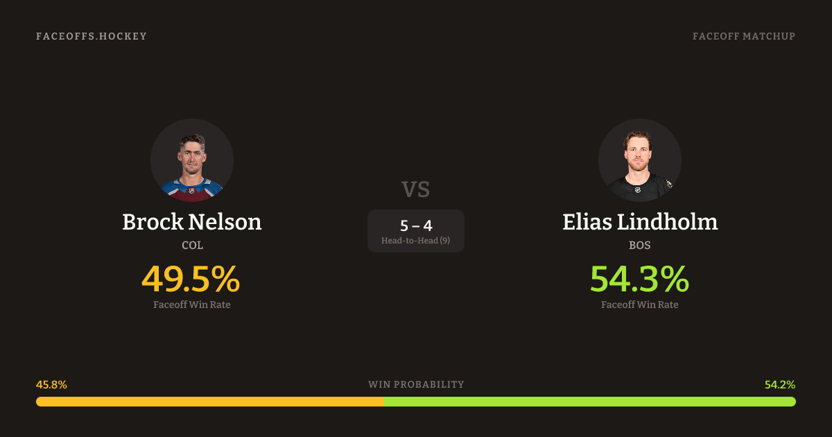 Brock Nelson vs Elias Lindholm — Faceoff Head-to-Head