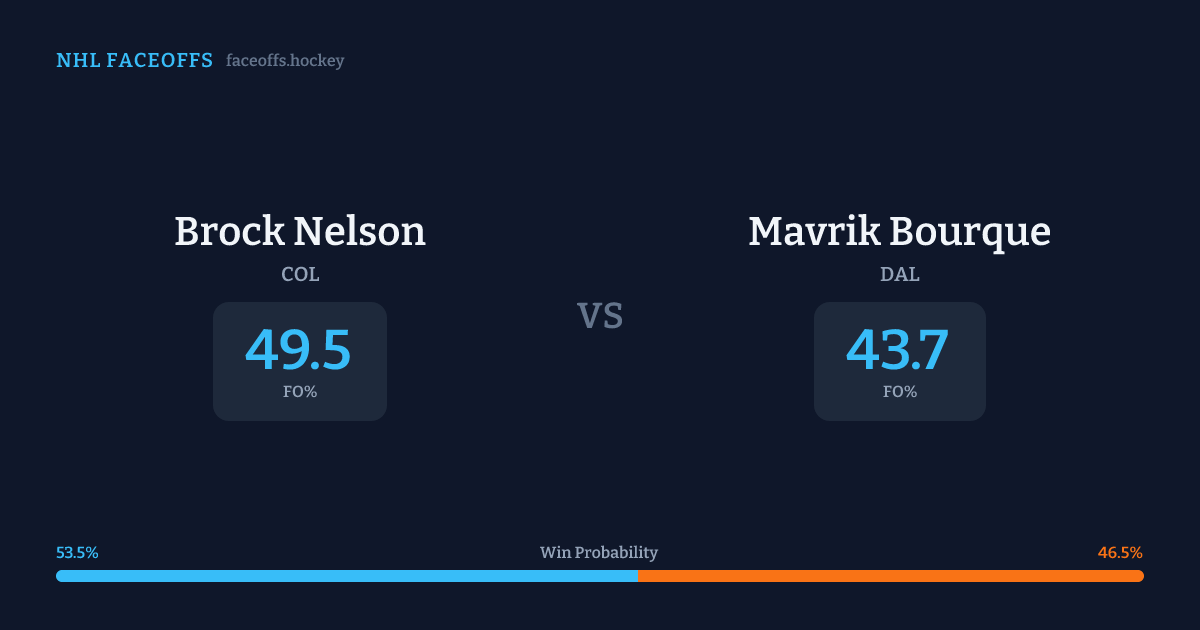 Brock Nelson vs Mavrik Bourque — Faceoff Head-to-Head