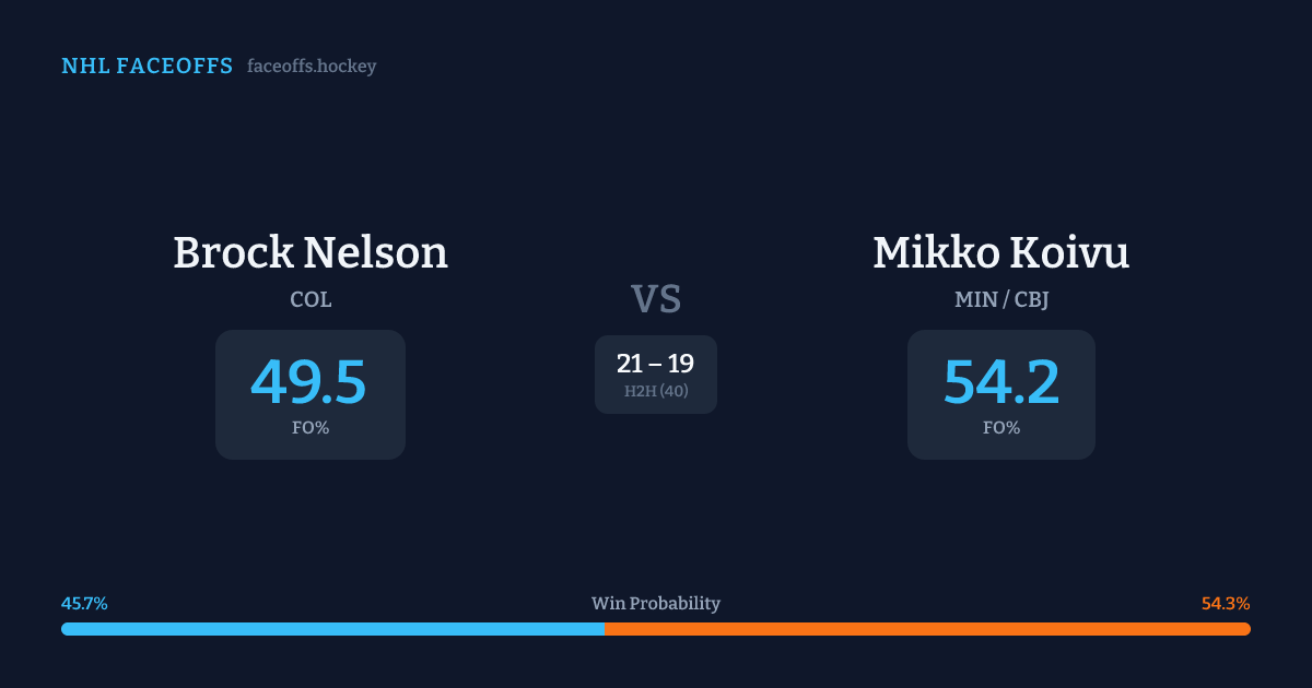 Brock Nelson vs Mikko Koivu — Faceoff Head-to-Head