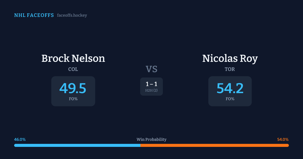 Brock Nelson vs Nicolas Roy — Faceoff Head-to-Head