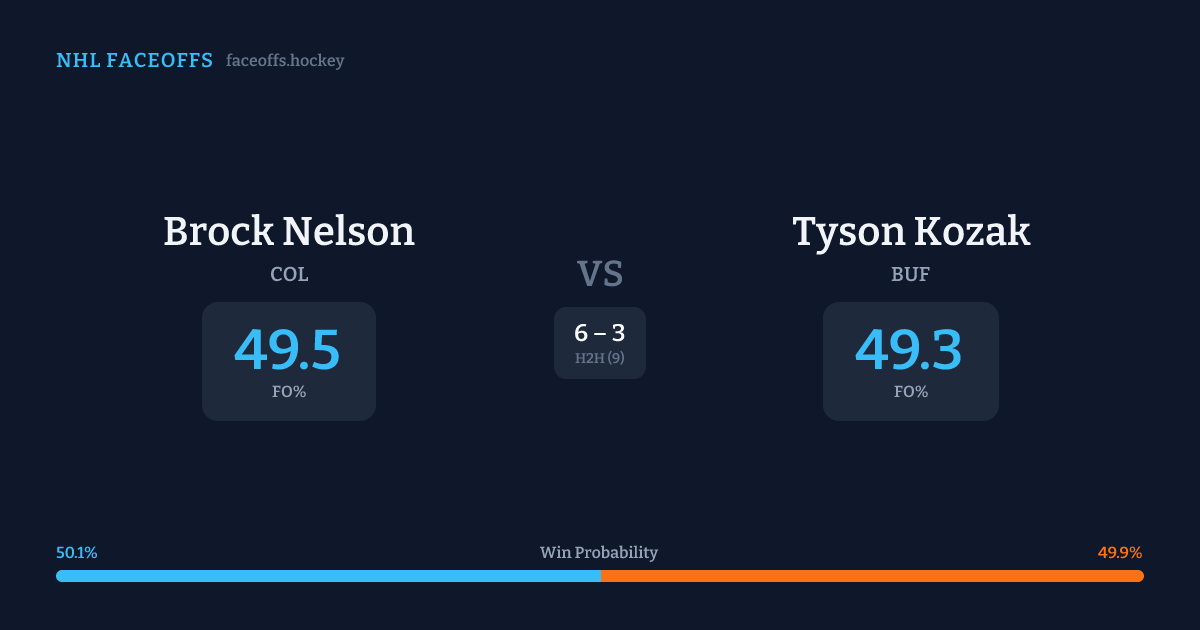 Brock Nelson vs Tyson Kozak — Faceoff Head-to-Head