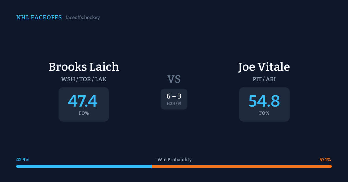 Brooks Laich vs Joe Vitale — Faceoff Head-to-Head