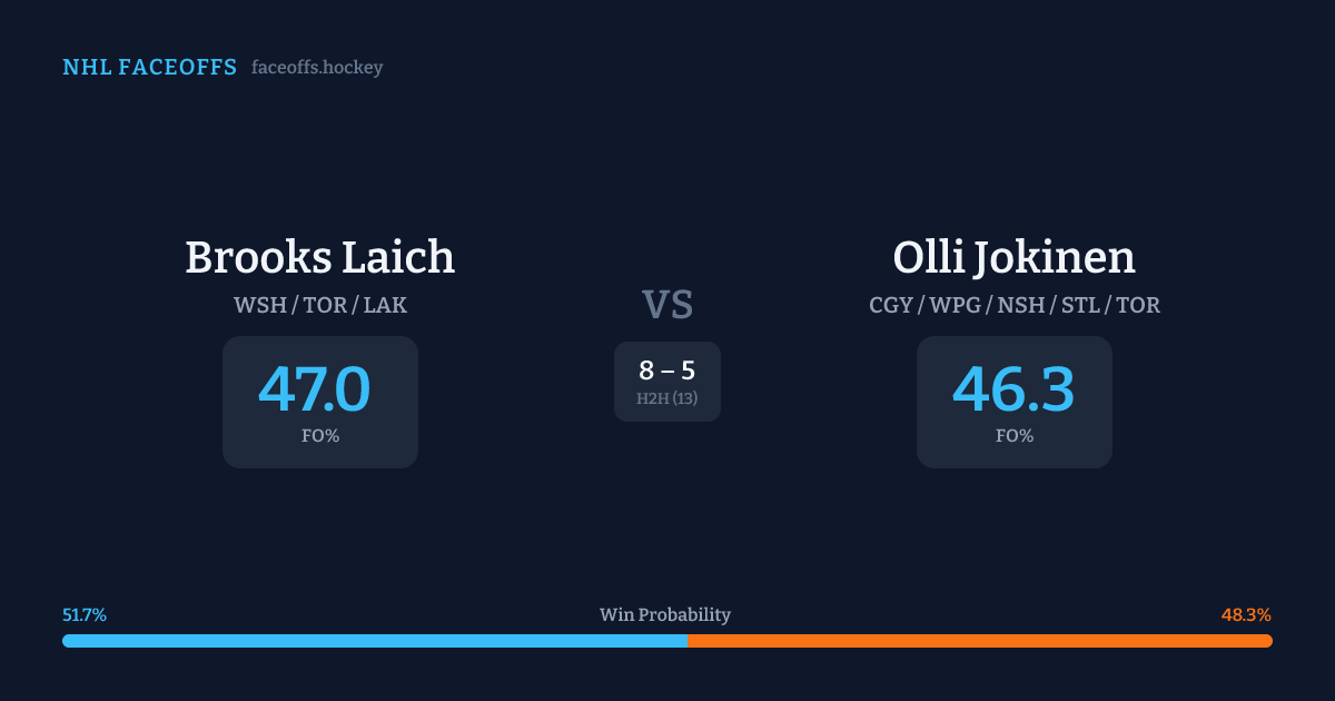 Brooks Laich vs Olli Jokinen — Faceoff Head-to-Head