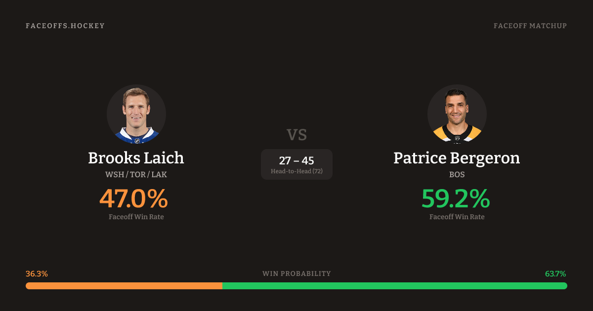 Brooks Laich vs Patrice Bergeron — Faceoff Head-to-Head
