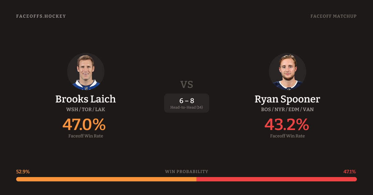 Brooks Laich vs Ryan Spooner — Faceoff Head-to-Head