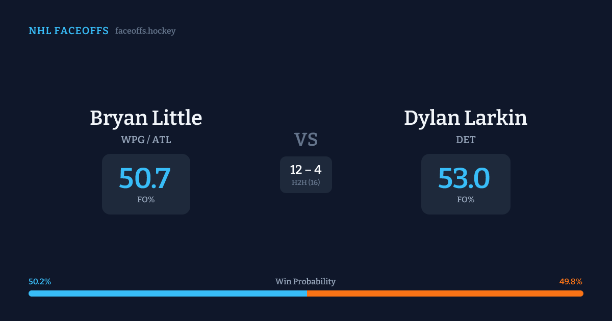 Bryan Little vs Dylan Larkin — Faceoff Head-to-Head