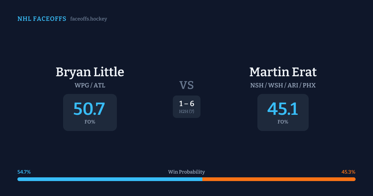 Bryan Little vs Martin Erat — Faceoff Head-to-Head