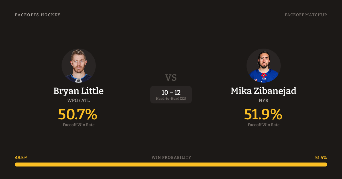 Bryan Little vs Mika Zibanejad — Faceoff Head-to-Head