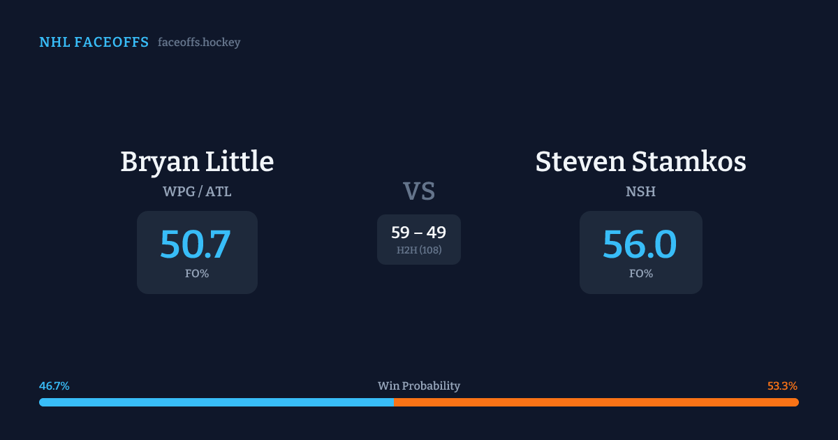 Bryan Little vs Steven Stamkos — Faceoff Head-to-Head