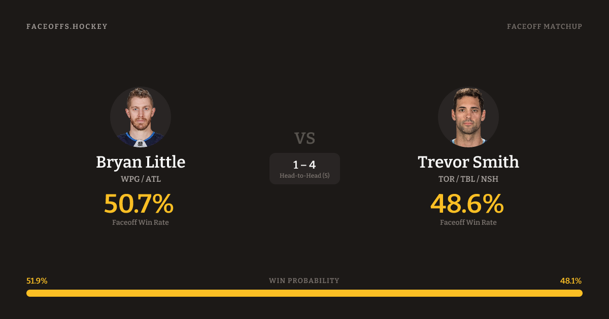 Bryan Little vs Trevor Smith — Faceoff Head-to-Head