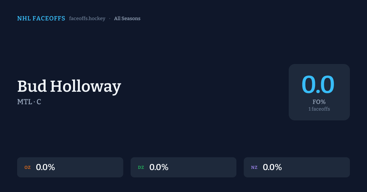 Bud Holloway has a career faceoff win percentage of 0.0% across 1 faceoffs. Best zone: Neutral (0.0%).