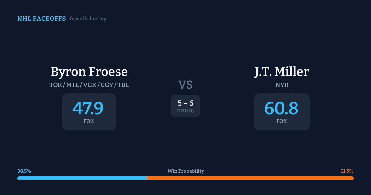 Byron Froese vs J.T. Miller — Faceoff Head-to-Head