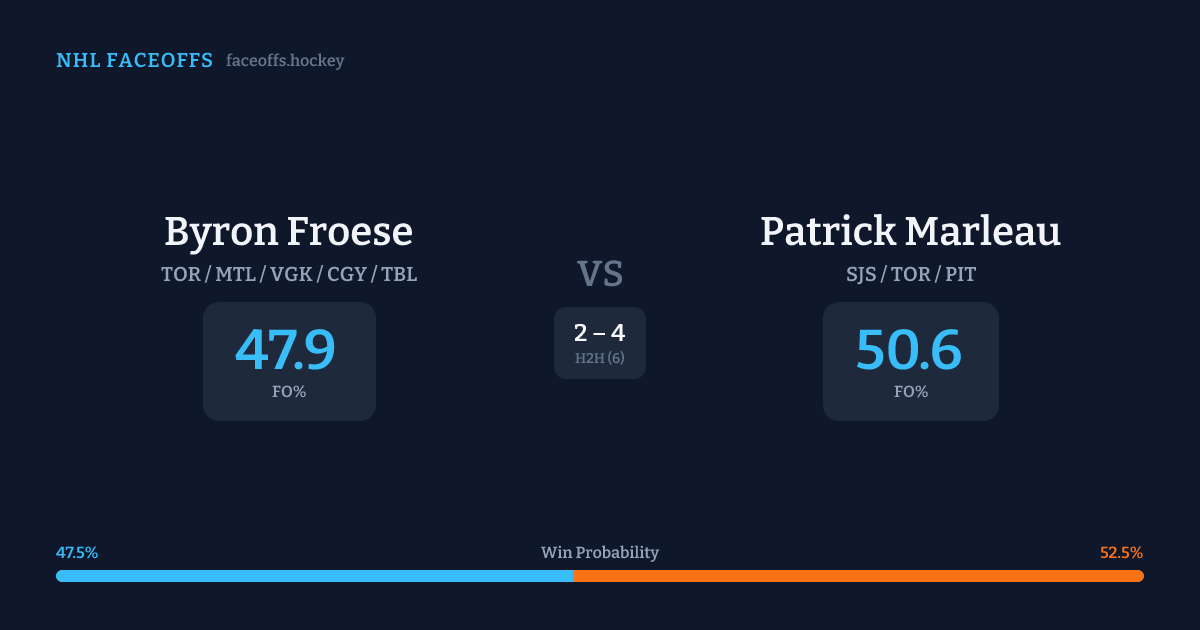 Byron Froese vs Patrick Marleau — Faceoff Head-to-Head