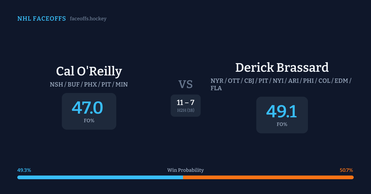 Cal O'Reilly vs Derick Brassard — Faceoff Head-to-Head