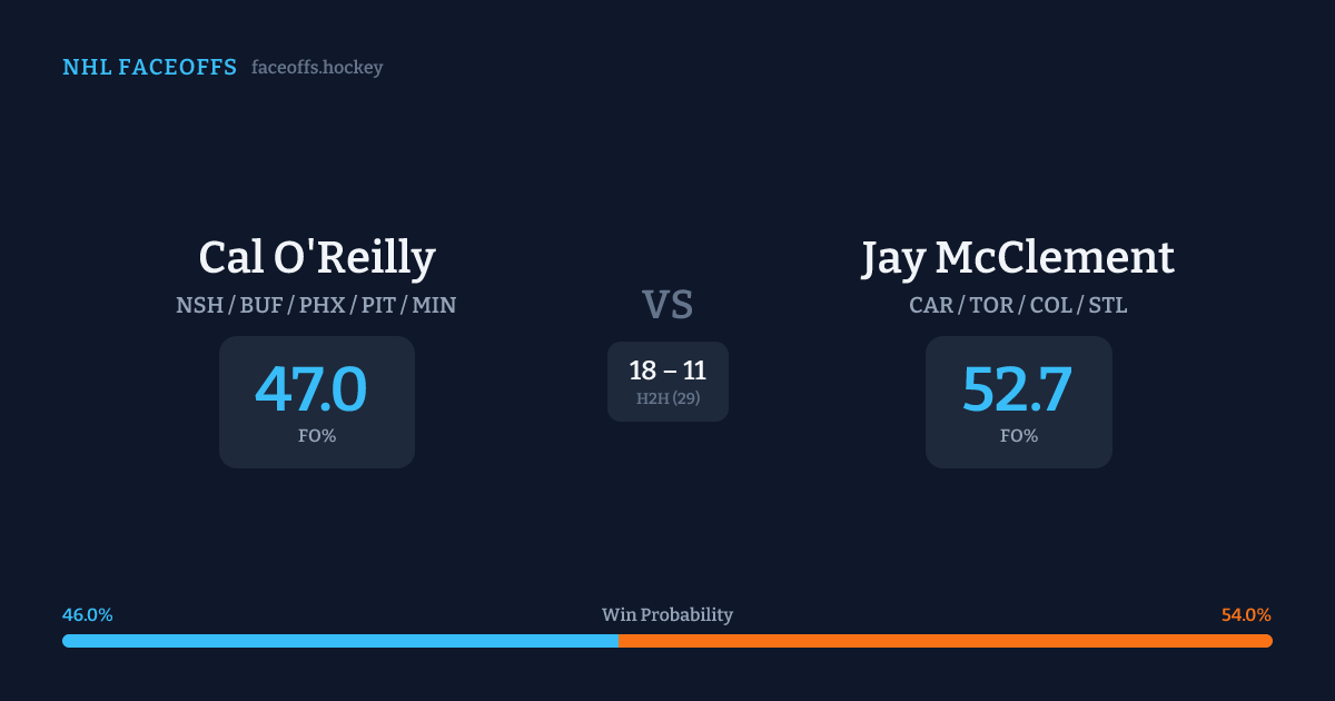 Cal O'Reilly vs Jay McClement — Faceoff Head-to-Head