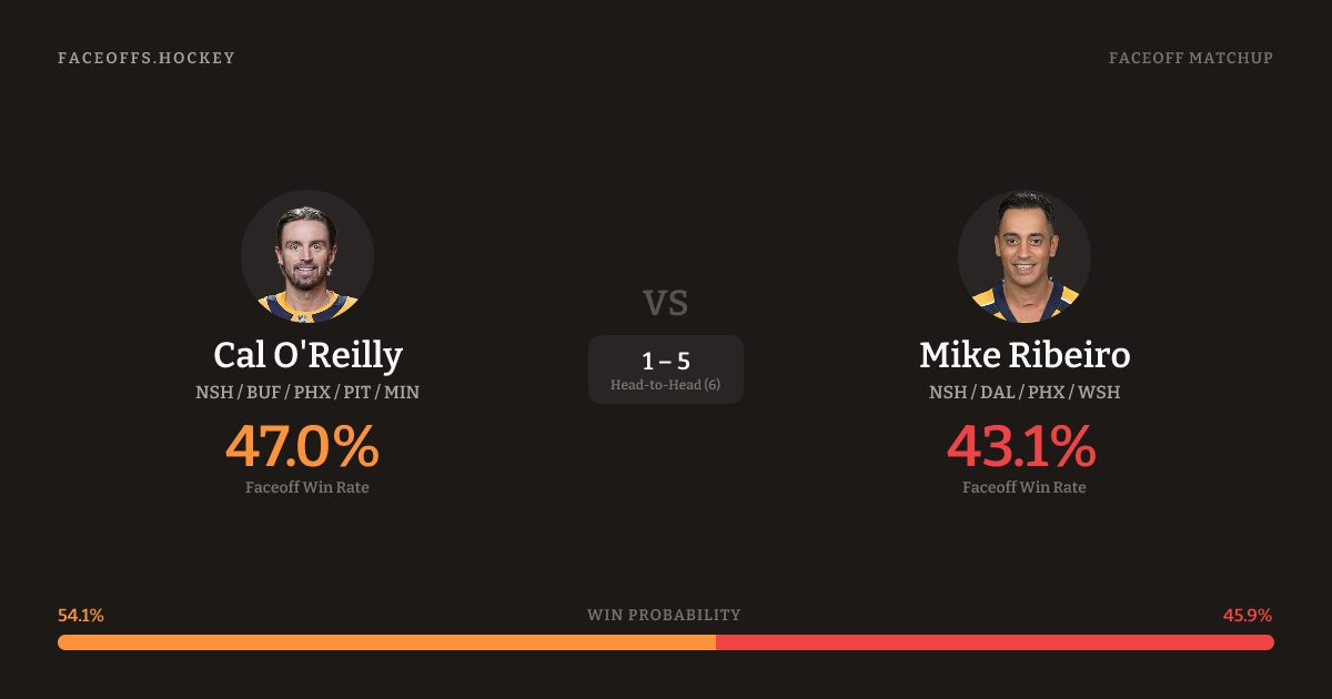 Cal O'Reilly vs Mike Ribeiro — Faceoff Head-to-Head