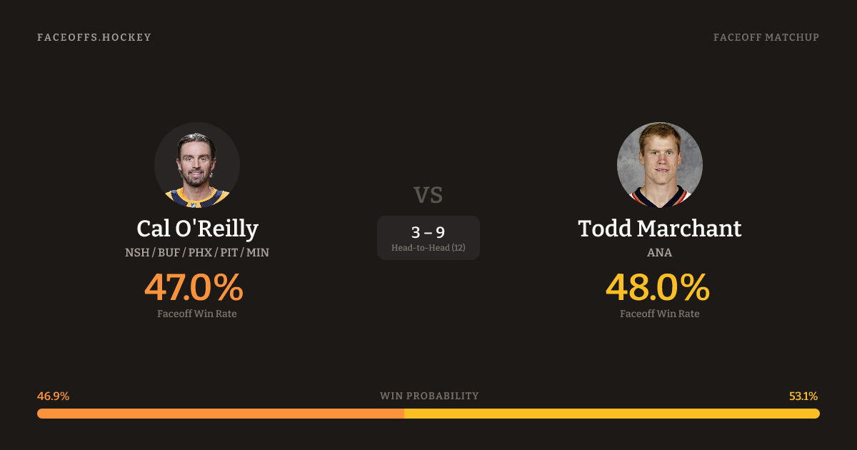 Cal O'Reilly vs Todd Marchant — Faceoff Head-to-Head