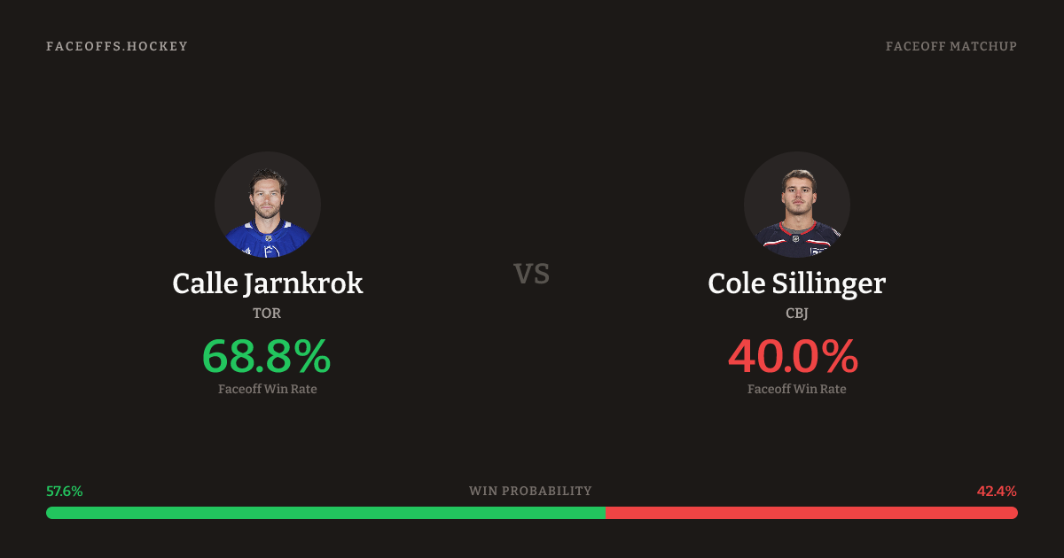 Calle Jarnkrok holds a +2.9% FO% edge overall. Jarnkrok wins 46.5% vs left-shot opponents — Sillinger shoots left.