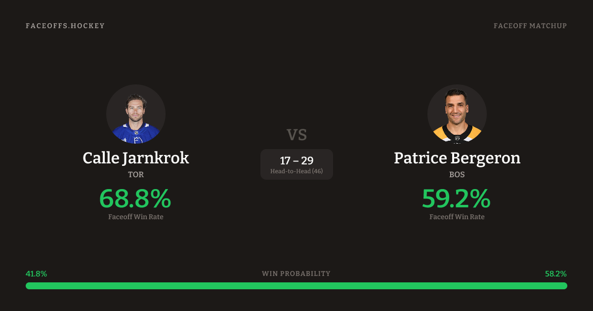 Calle Jarnkrok vs Patrice Bergeron — Faceoff Head-to-Head