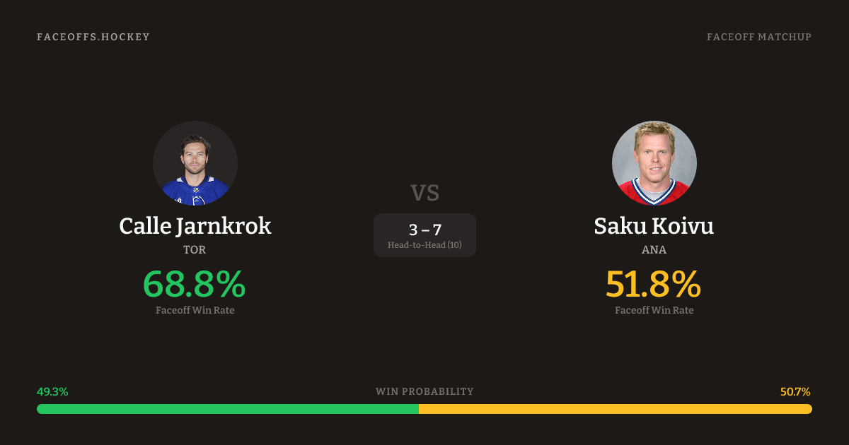 Calle Jarnkrok vs Saku Koivu — Faceoff Head-to-Head