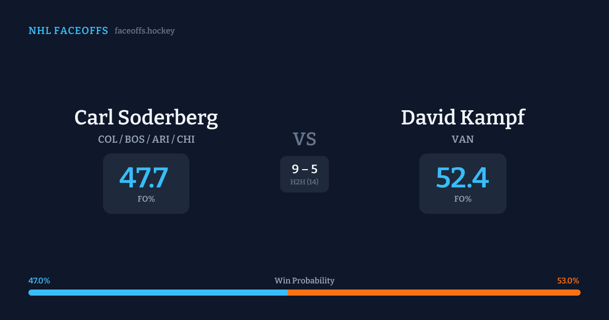 Carl Soderberg vs David Kampf — Faceoff Head-to-Head