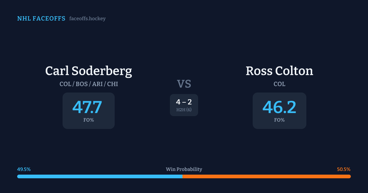Carl Soderberg vs Ross Colton — Faceoff Head-to-Head