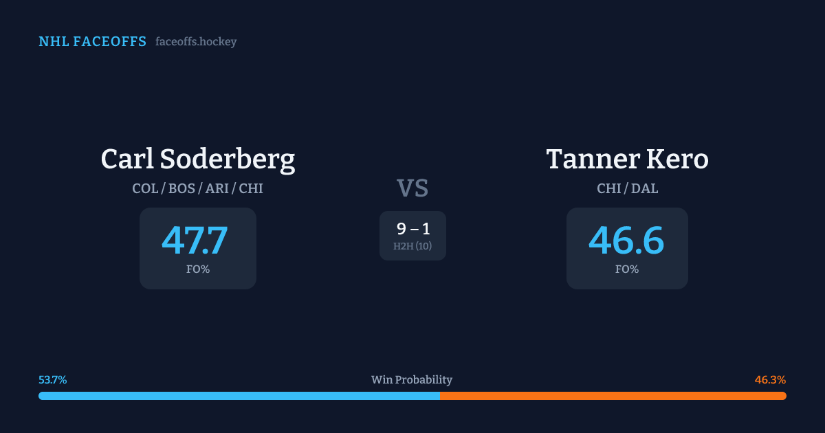 Carl Soderberg vs Tanner Kero — Faceoff Head-to-Head
