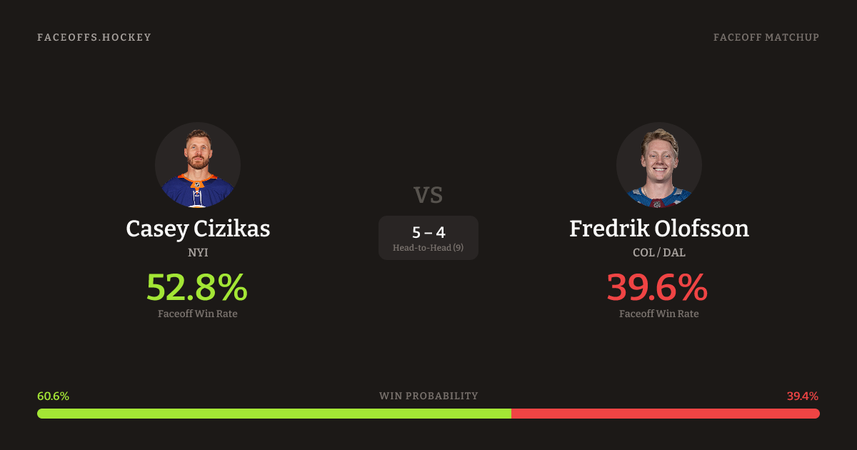 Casey Cizikas vs Fredrik Olofsson — Faceoff Head-to-Head