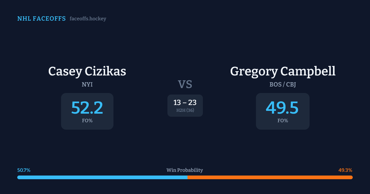 Casey Cizikas vs Gregory Campbell — Faceoff Head-to-Head