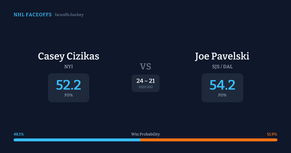Casey Cizikas vs Joe Pavelski — Faceoff Head-to-Head