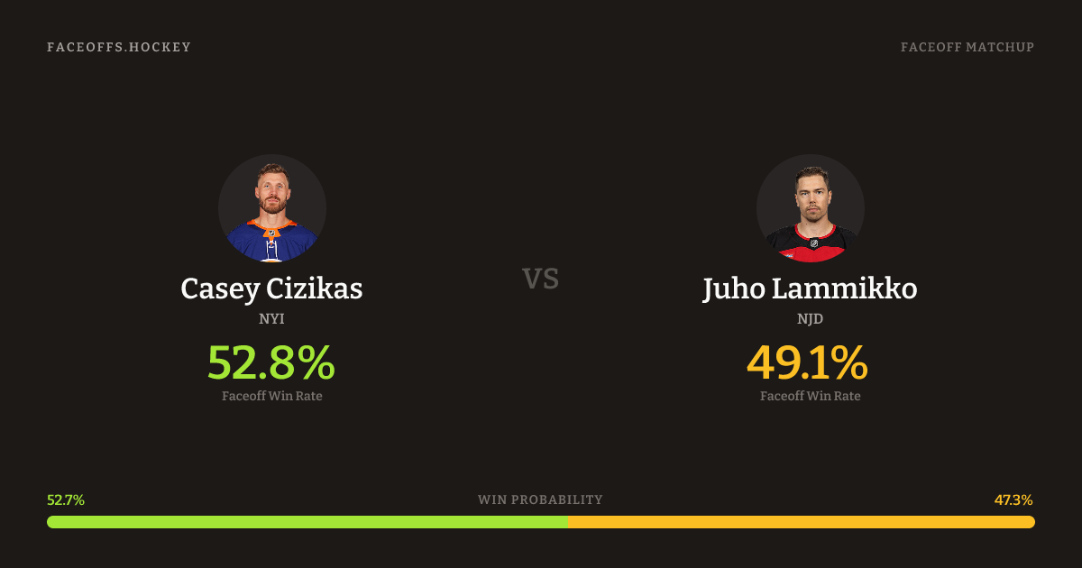 Casey Cizikas vs Juho Lammikko — Faceoff Head-to-Head